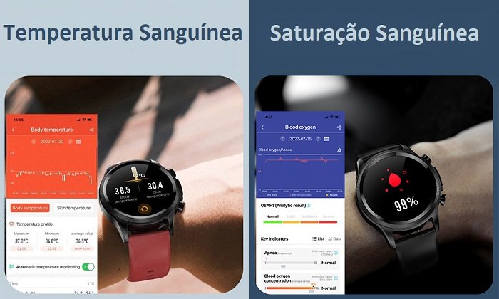 Monitor de glicose no sangue em tempo real: Este Smartwatch foi projetado com o mais recente chip de monitoramento de glicose, que será capaz de rastrear e registrar seu nível de glicose em seu corpo ao longo do dia.